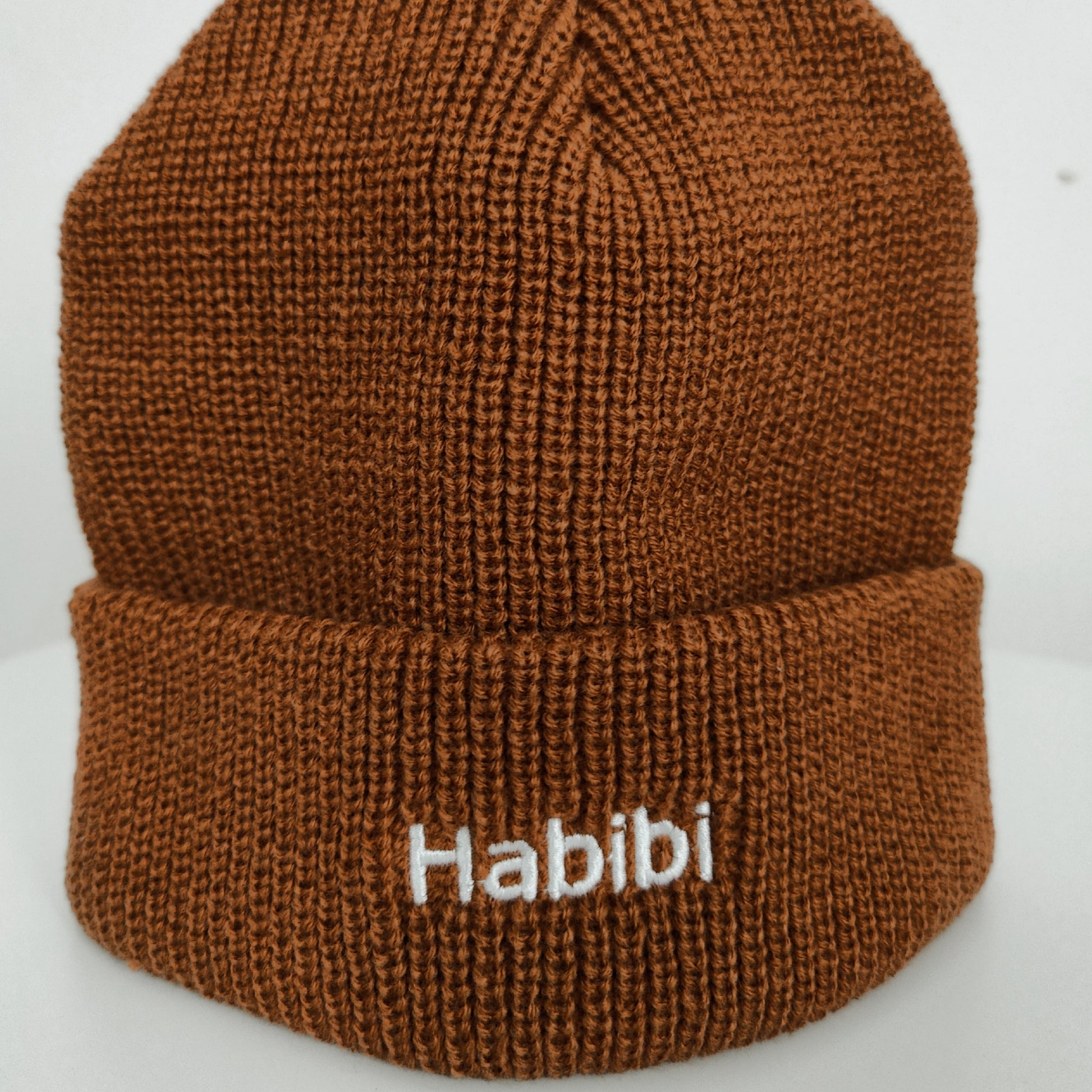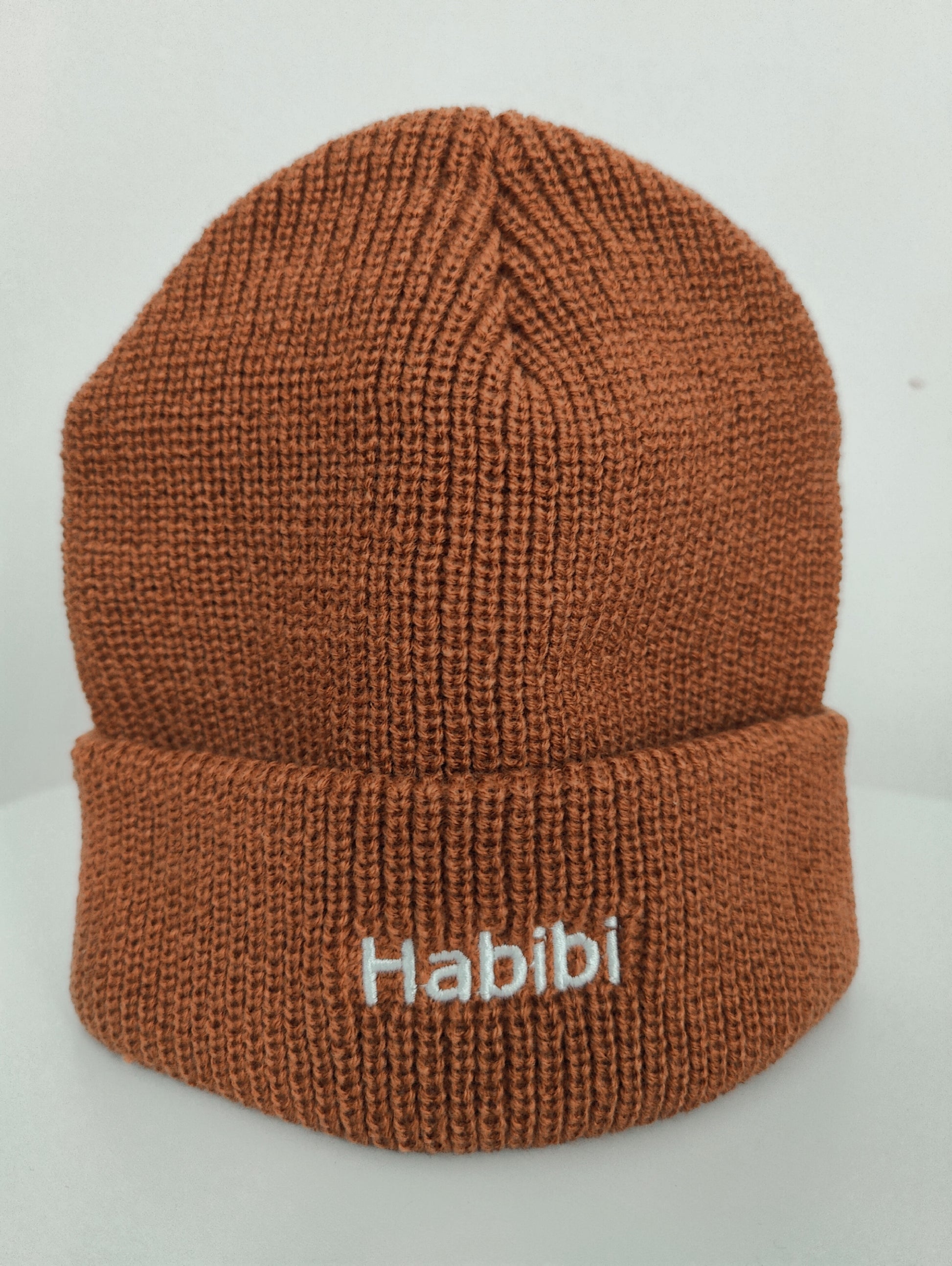 The beanie "Habibi" is a stylish and comfortableaccessory, perfect for keeping you warm in colder weather. Made from high-quality materials, it features a classic design with a snug fit. The Habibi beanie is versatile, making it suitable for various casual occasions, and its quality craftsmanship ensures durability. Add a touch of warmth and fashion to your outfit with the Habibi beanie.