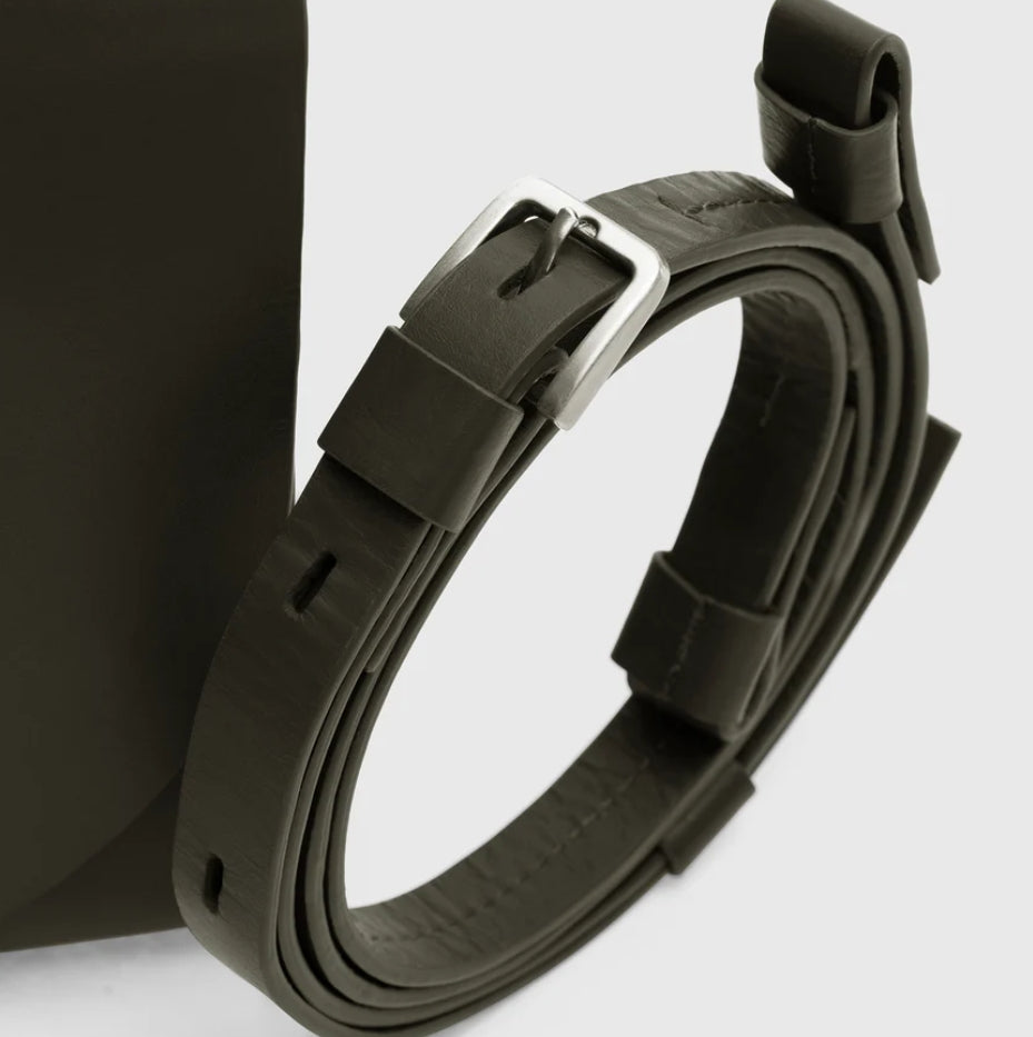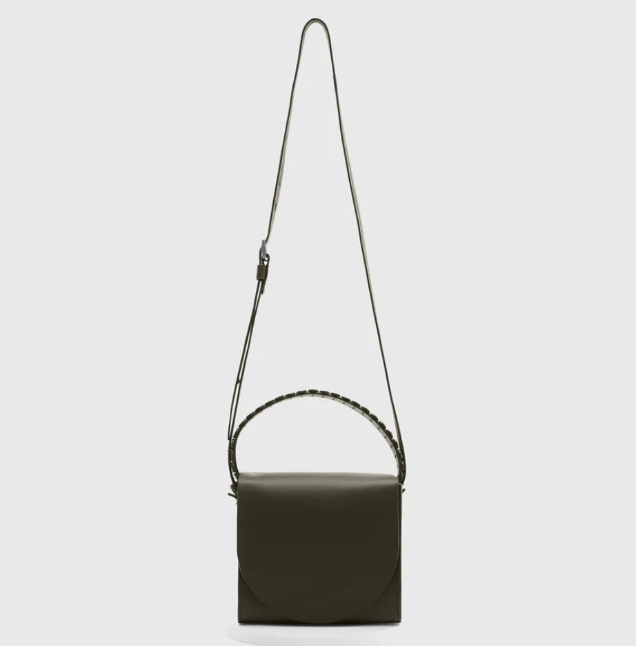 Margaux is our statement mini. Wear x-body or unclip the long strap and or slip over your wrist. Designed to leave a lighter footprint, the statement handle is created from re-purposed leather trims. Peek inside to find enough room for phone, fave fragrance, new lippy and more.