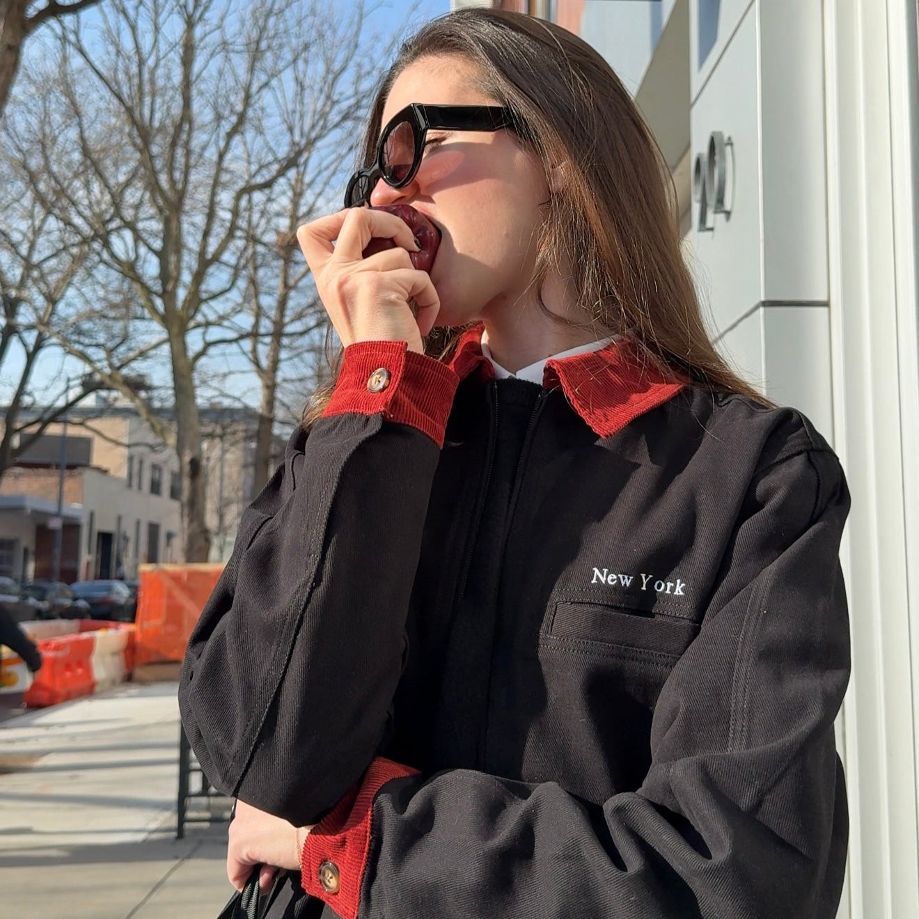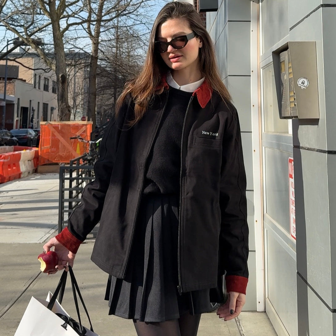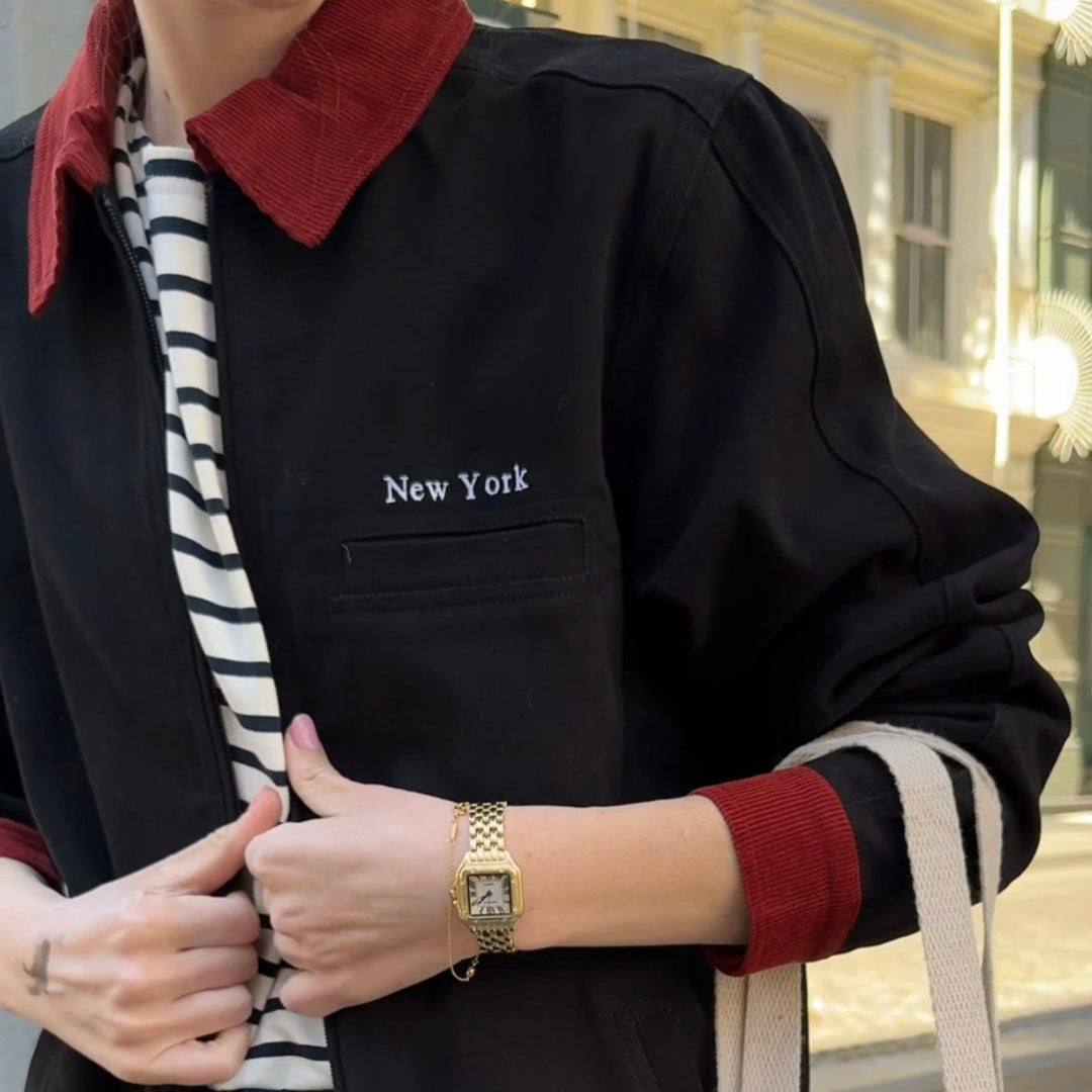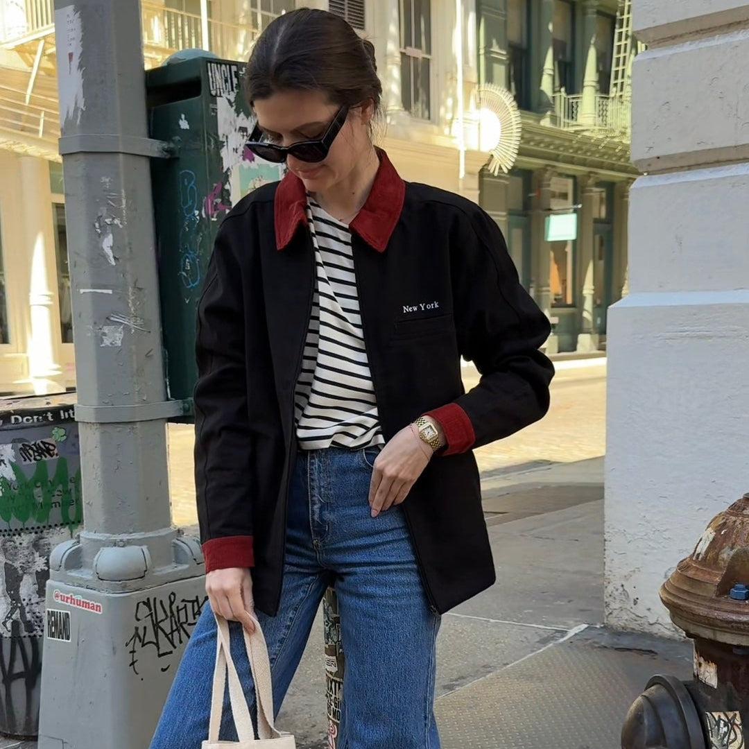 An unisex full-Zip Mechanics Jacket anyone can wear. We reinterpreted this beloved workwear style with durable denim, a contrast collar and a relaxed fit and of course with the New York embroidery on the chest.