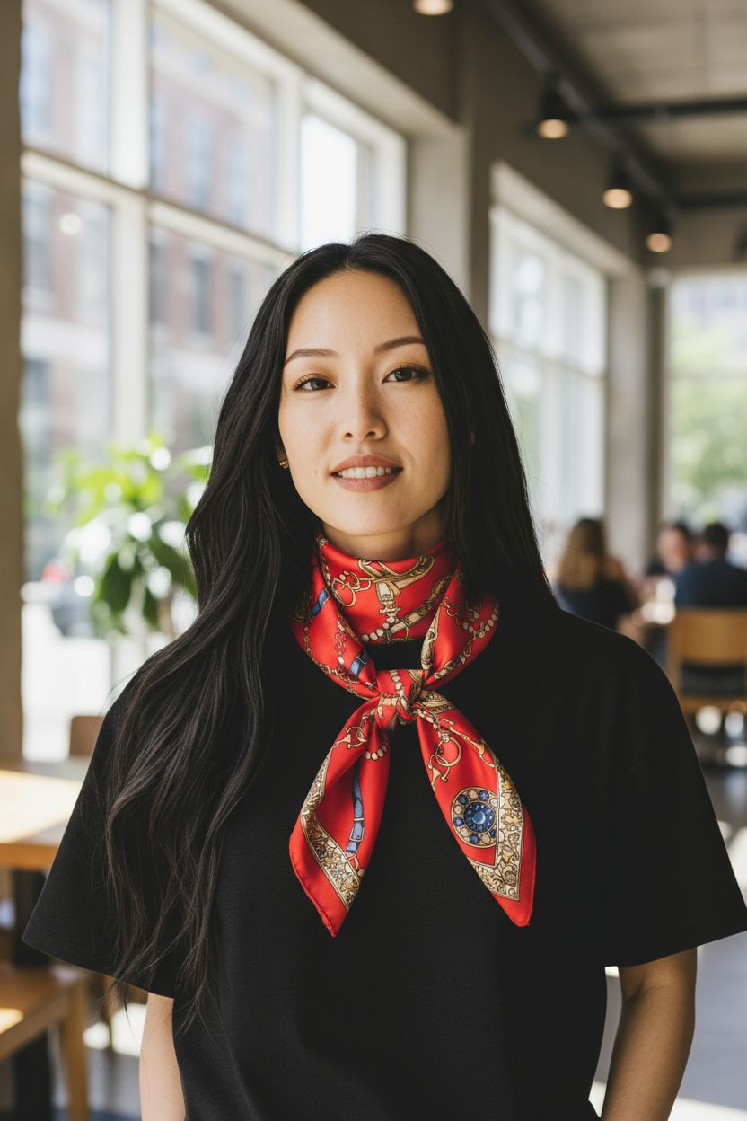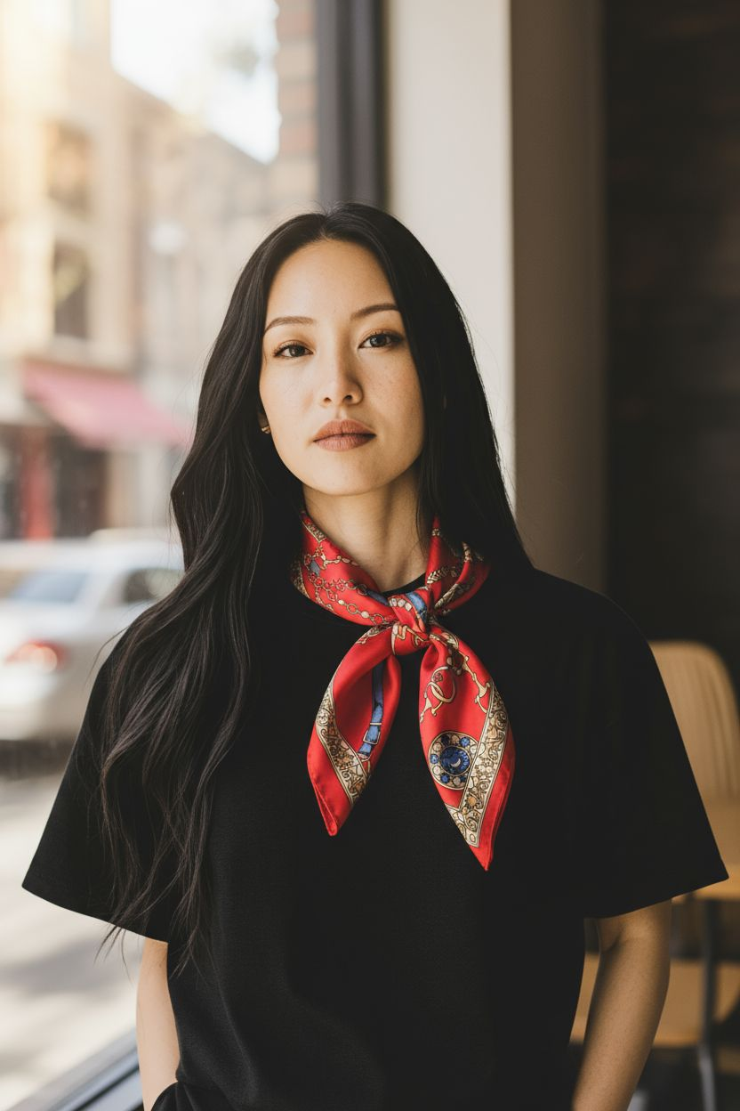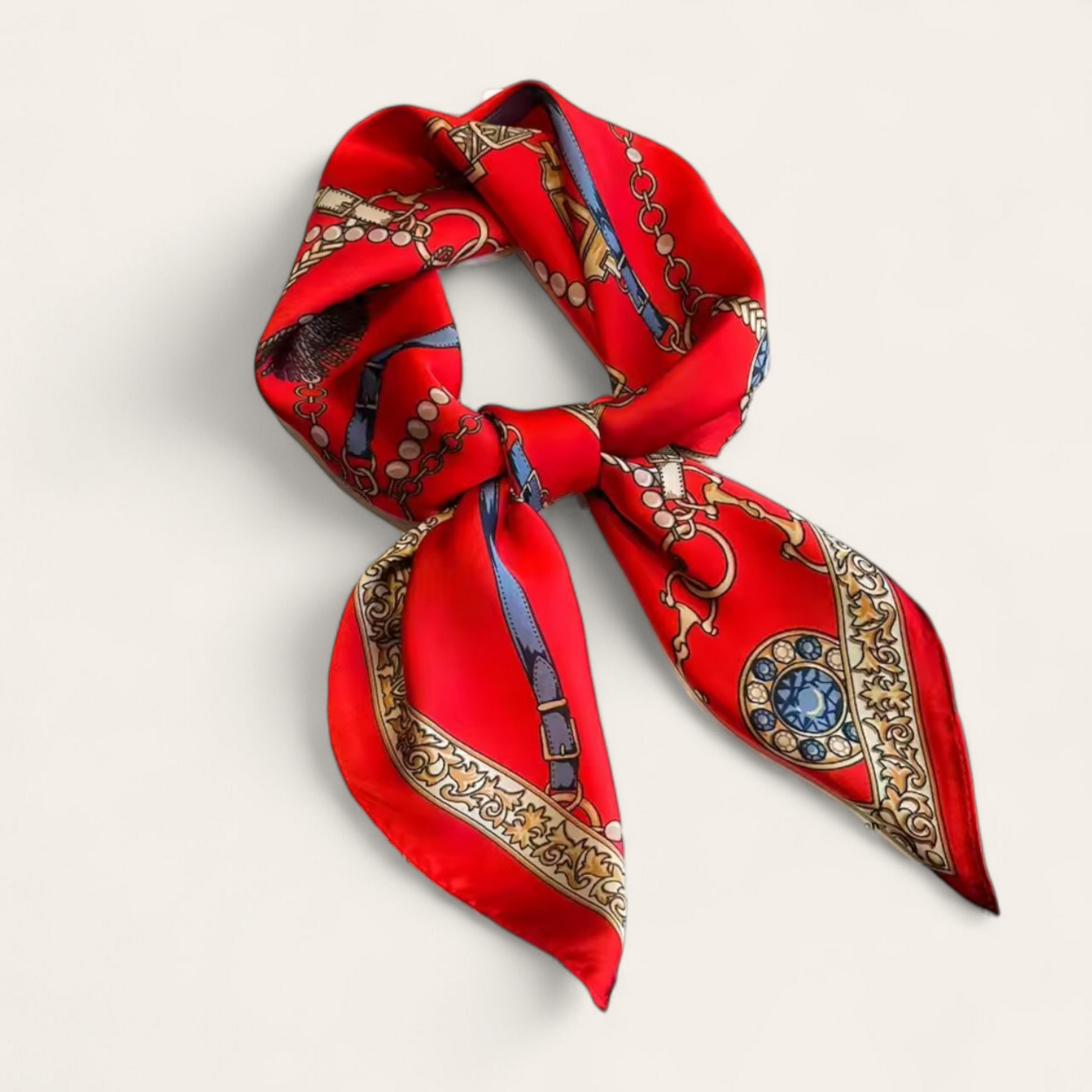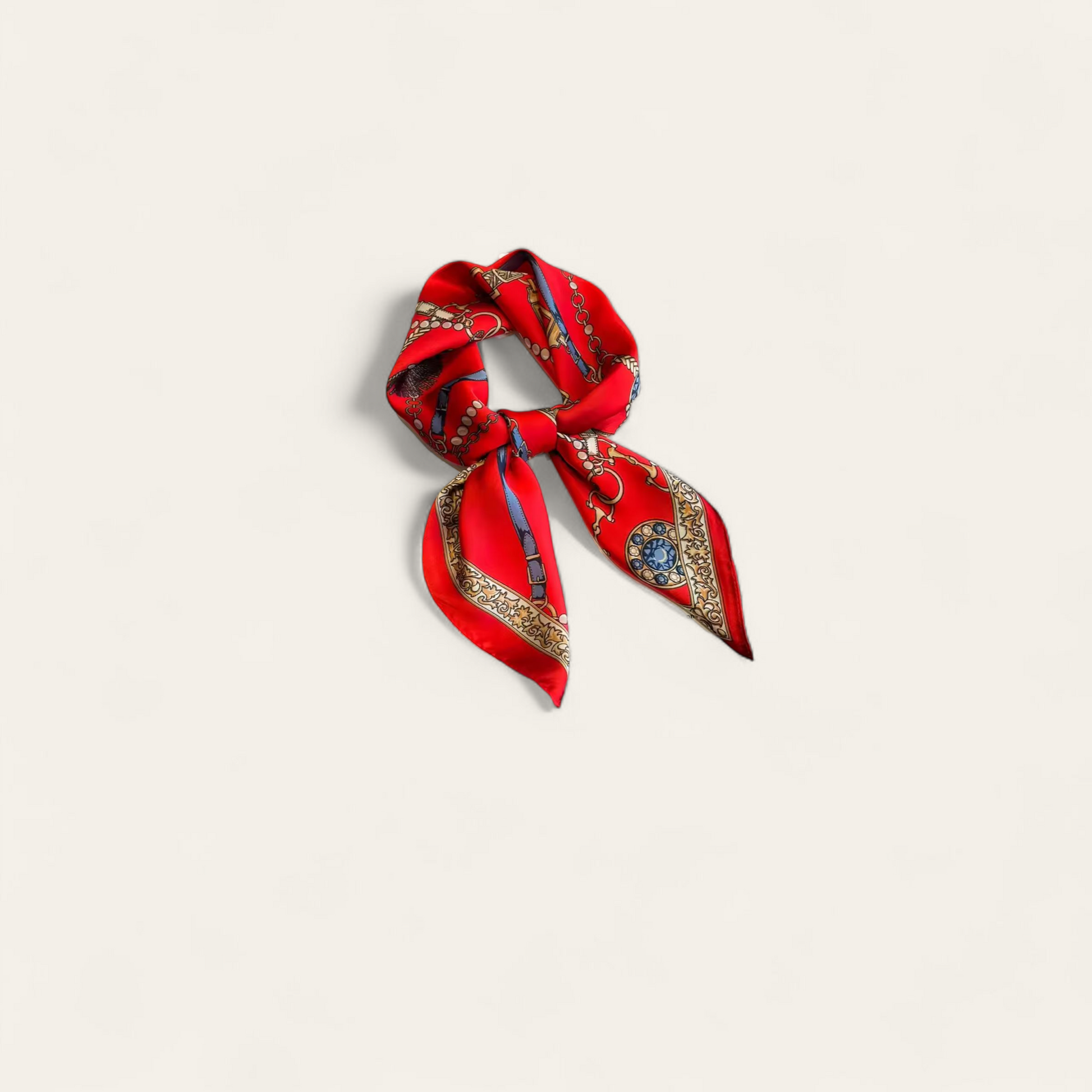 Whether tied neatly around the neck, draped over your shoulders, or styled as a chic headscarf, this versatile accessory brings timeless charm and color to your wardrobe.